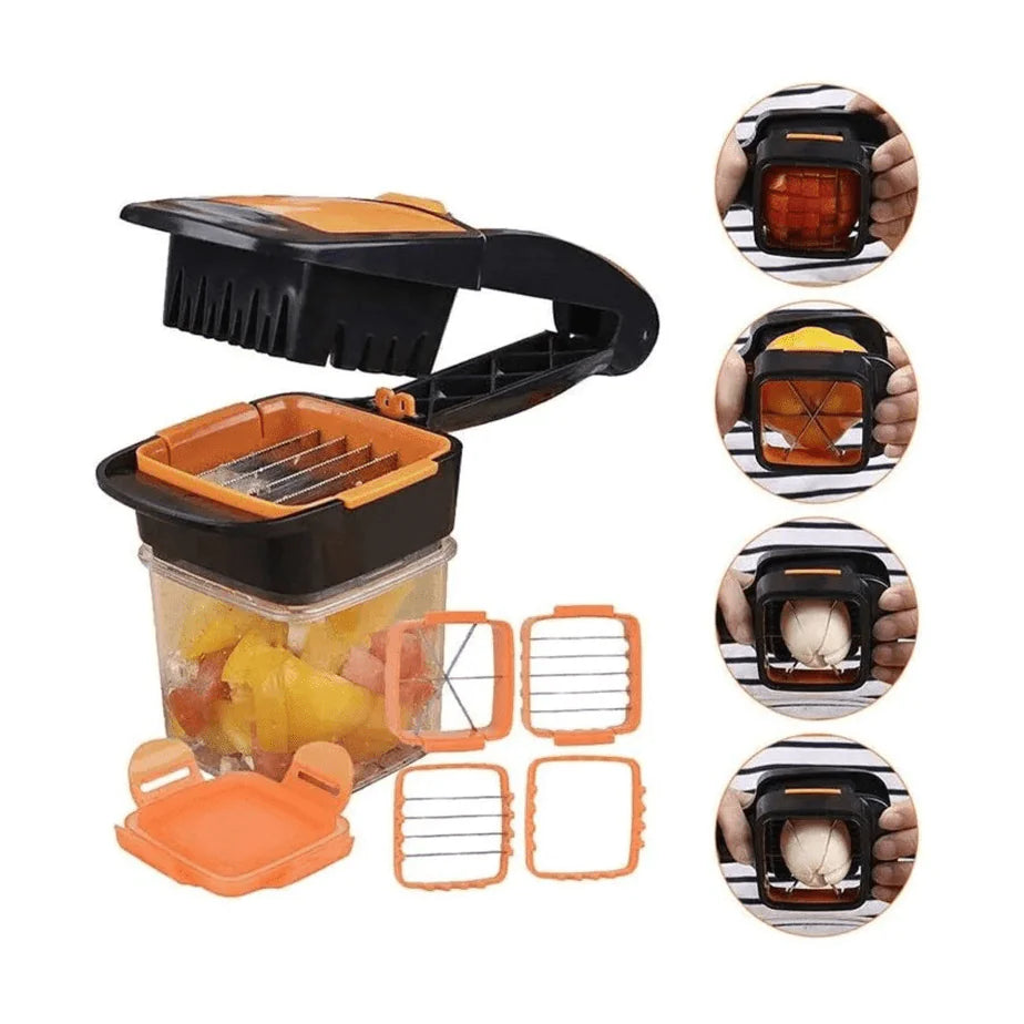 Različita sečiva se mogu kombinovati za sečenje debelih kriški, tankih kriški, kockica i šestina. Samo ubacite hranu, pritisnite je i sve se savršeno iseče za nekoliko sekundi. I meka i tvrda hrana kao što su tikvice, paradajz, pečurke, jaja, limun itd.
