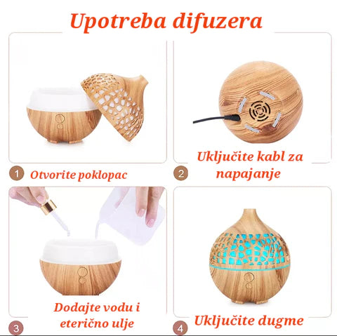 Potrebno je samo da u rezervoar sipate vodu, po želji dodate par kapi aromatičnog esencijalnog ulja, uključite u struju, ukljucite na tač dugme i uživate u SPA atmosferi.