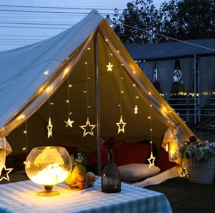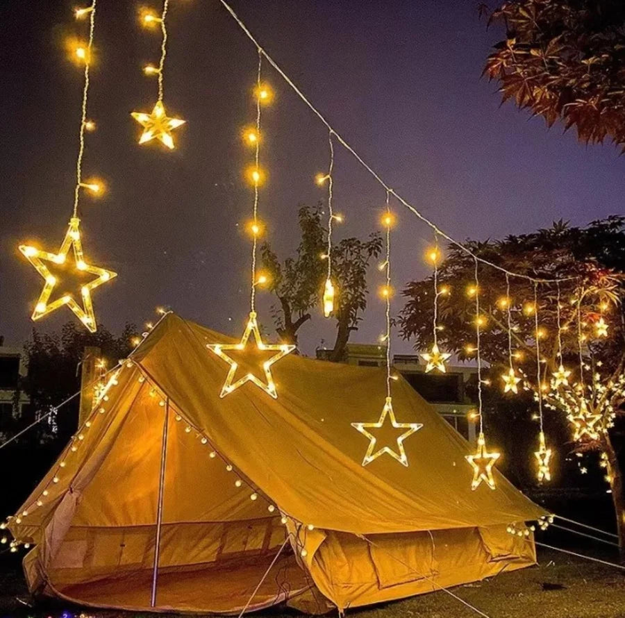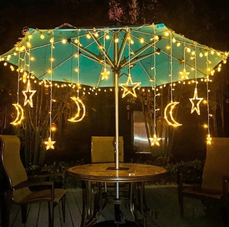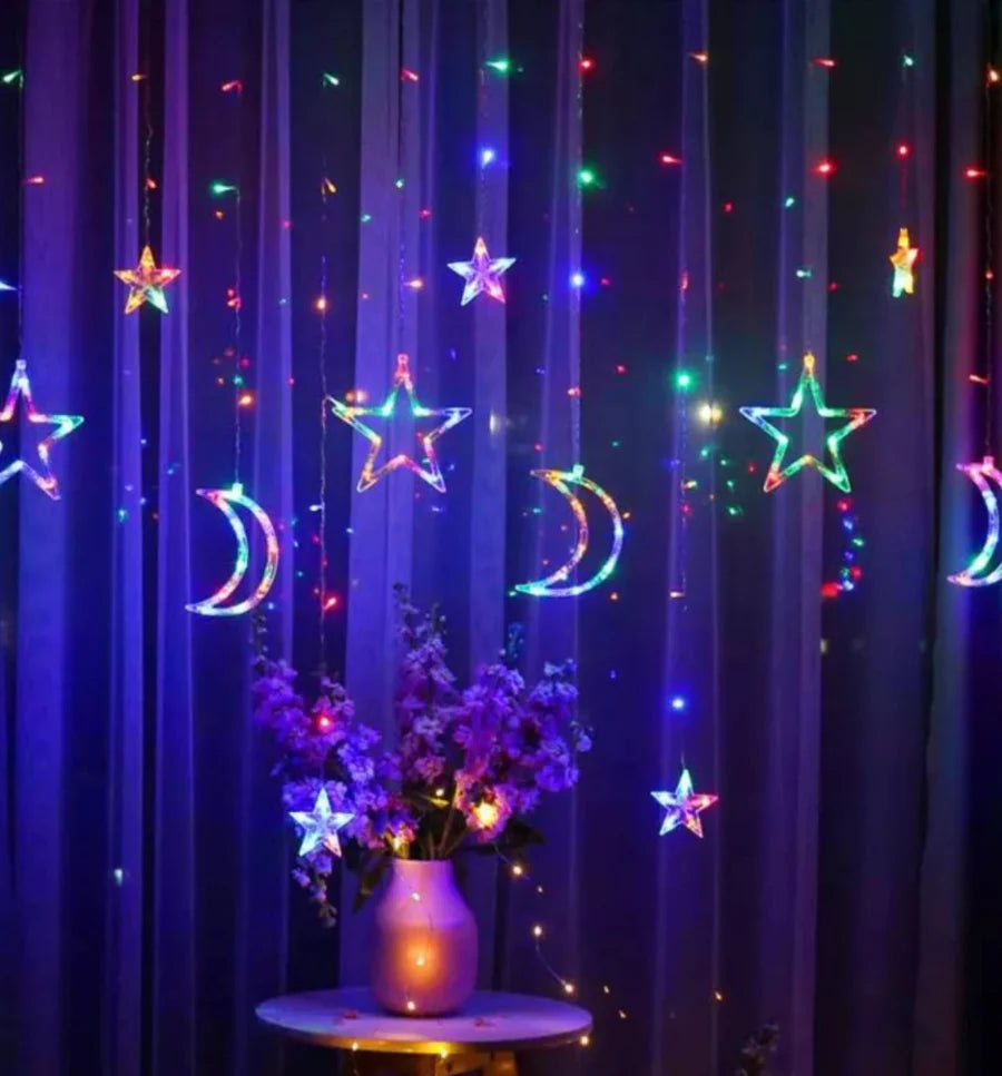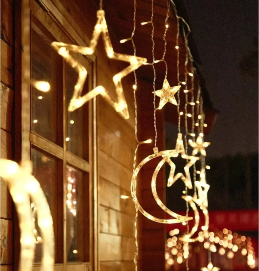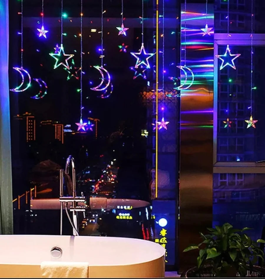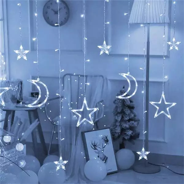 Ova fantastična LED svetlosna zavesa sadrži mesec i zvezdice (različitih veličina) koje prelepo sijaju, dajući Vašim zimskim noćima nebeski sjaj.