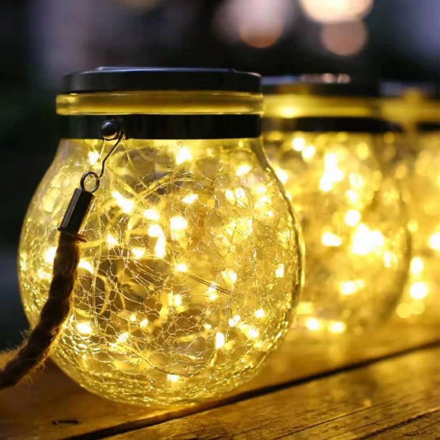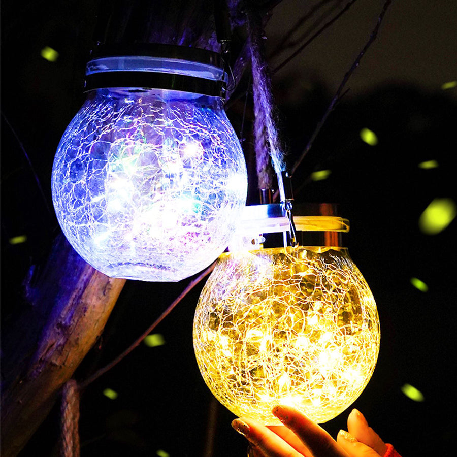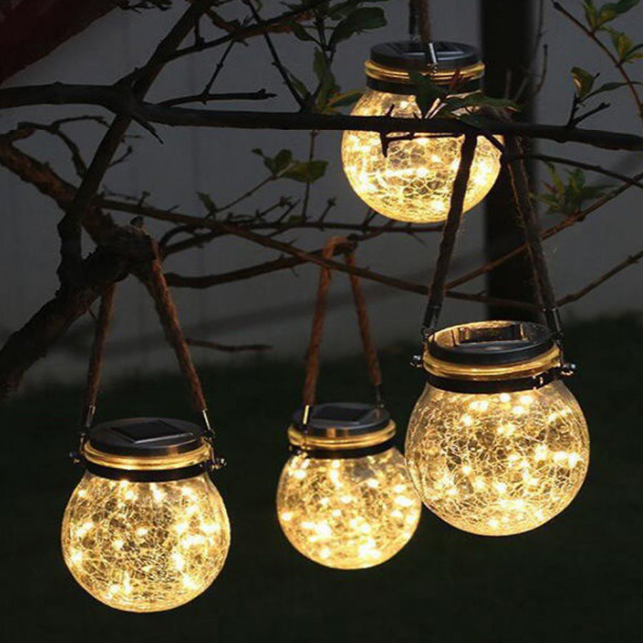 Jedinstveni dizajn napuknute staklene kugle solarnog lustera emituje dinamično i jako svetlo. Sa ručkom za uže, okačite naše solarne lampe sa poverenjem kao svetla za dvorište, svetla u dvorištu, svetla za zabave, svetla za staze, svetla za baštu i još mnogo toga.